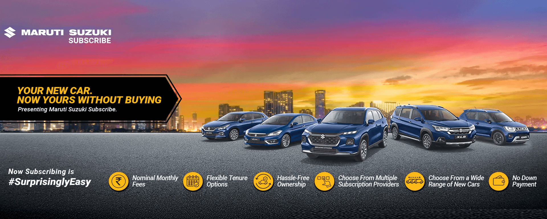 Maruti Suzuki Subscribe enables all customers to enjoy driving their preferred Maruti Suzuki cars without having to deal with all the financial responsibilities that come with owning a car. All you need to do is opt for a monthly subscription plan at a fixed monthly fee, which includes the routine maintenance and insurance costs, and choose a flexible tenure. At Chouhan Automobiles in, , Bhilai, all Hatchback, Sedan, SUV, the MUV models line-up includes Alto K10, Celerio, Dzire, Eeco, Ertiga, Swift, S-Presso, Brezza, Victoris, WagonR. Here, you will enjoy Maruti Suzuki Subscribe benefits such as: